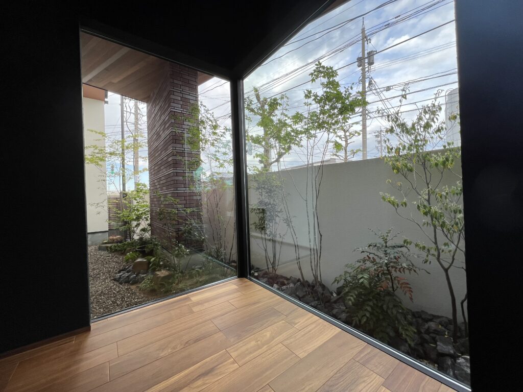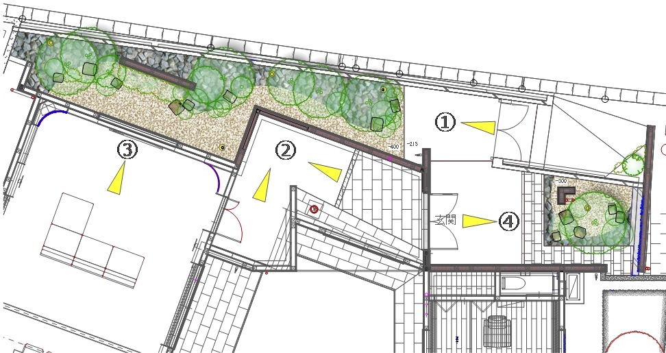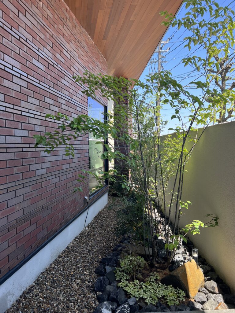 下草がまだ小さいですが、雑木の庭のようなナチュラルな植栽。