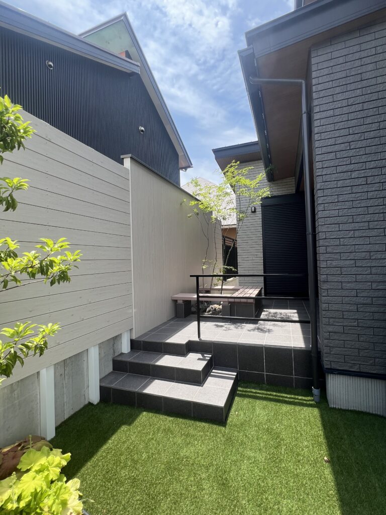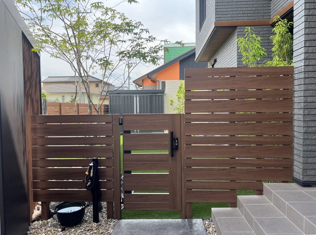 ここは、タカショーのエバーアートボードとエバーアートウッドのフェンスでしっかり目隠し。