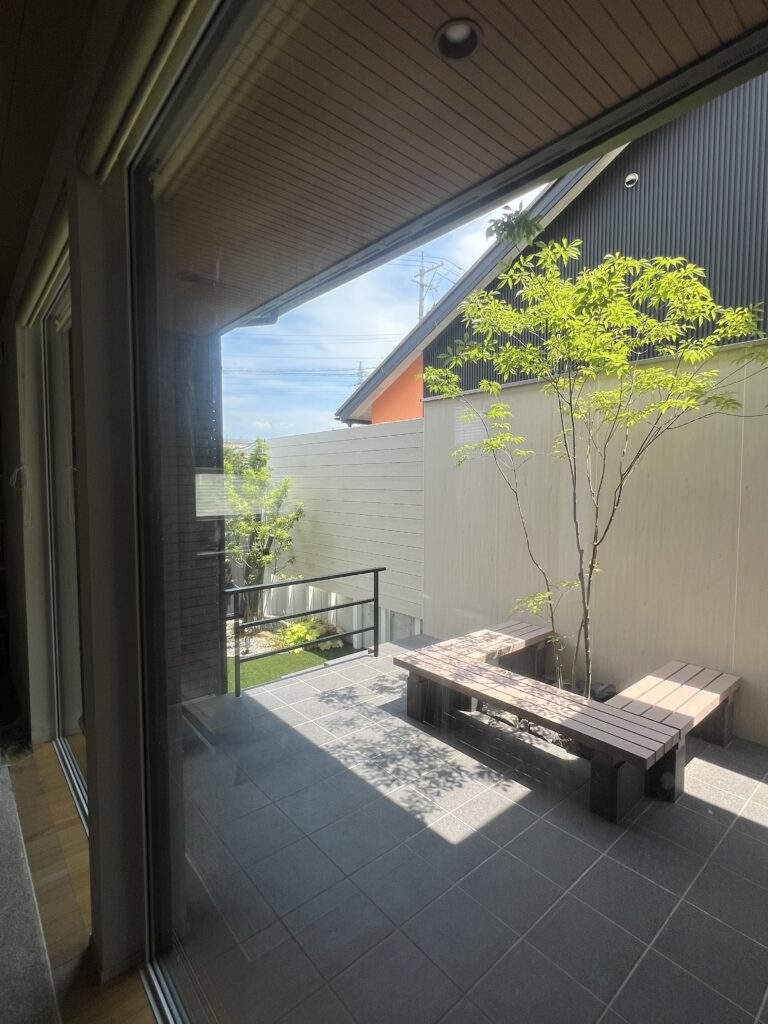 リビングに面したタイルテラス部分