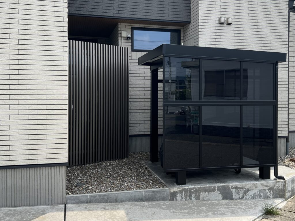 自転車置き場はカーポートをサイクルポートサイズにカスタマイズしました。